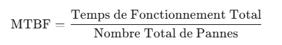 Le MTBF est calculé en divisant le temps de fonctionnement total des équipements par le nombre total de pannes survenues durant cette même période.