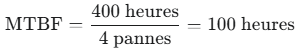 Exemple de Calcul : Une ligne d’assemblage fonctionne 400 heures durant un mois et subit 4 pannes qui nécessitent un arrêt de la production.