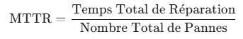 Le MTTR est calculé en divisant le temps total passé en réparation (pour une période donnée) par le nombre total de défaillances durant cette même période.