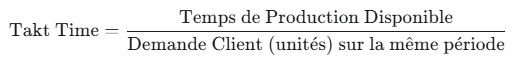 Le Takt Time est déterminé en divisant le temps de production disponible par la demande client.