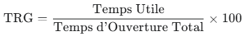 Le TRG est calculé en utilisant la même logique de décomposition des pertes que le TRS, mais en partant du Temps d’Ouverture Total (TOT).